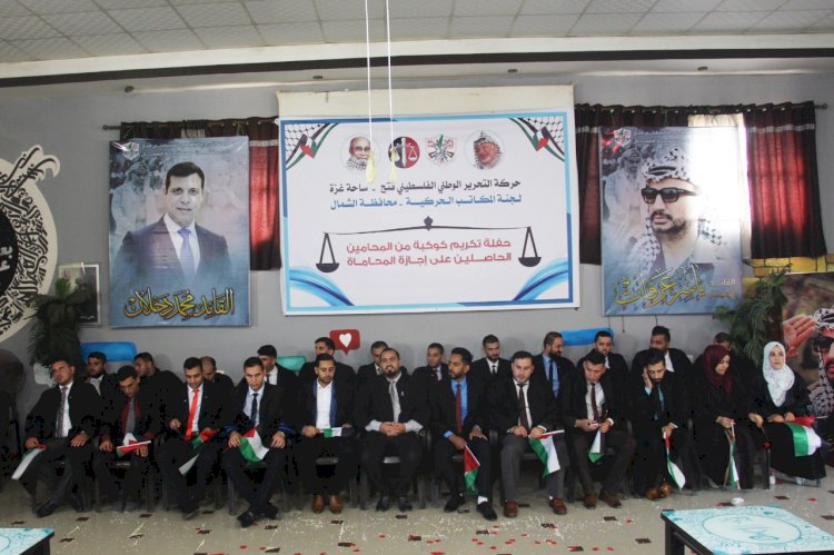 بحضور جمال أبو حبل نائب أمين سر لجنة السياسات بحركة فتح ساحة غزة وبهاء مطر أمين سر لجنة المكاتب الحركية بالساحة وأعضاء قيادة الساحة في محافظة الشمال وأحمد نصر نائب أمين سر حركة فتح بمحافظة الشمال ولفيف من كوادر حركة فتح بشمال غزة نظم المكتب الحركي للمحامين حفل تكريم لكوكبة جديدة من المحامين الذين أنهوا إجراءات مزاولة مهنة المحاماة .