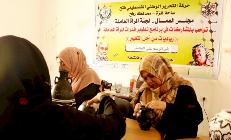 اختتمت لجنة المرأة العاملة بمجلس العمال حركة فتح ساحة غزة في محافظة رفح، ورشة فن الرسم على الفخار والتي تأتي ضمن برنامج تطوير قدرات المراة العاملة "رياديات من اجل التغيير" والتي اقيمت على مدار يومين متتاليين.