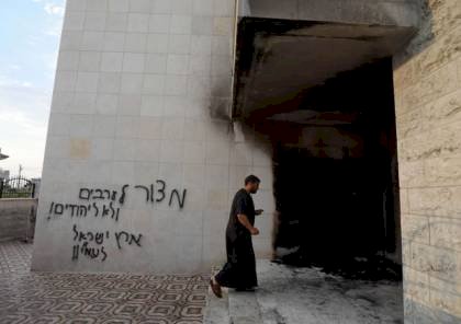 لم يضيع عايش الوقت، فاتصل بالإطفائية. وقد افترض أن أولاداً طمعوا وأحرقوا الخزانة المصنوعة من الخشب والبلاستيك التي يضع فيها المصلون أحذيتهم. رجال الإطفاء الذين وصلوا خلال دقائق قالوا له إن الأمر لا يتعلق بأولاد، وأشاروا إلى كتابات باللغة العبرية باللون الأسود على الحائط اللامع من اللون الأبيض الجديد. بعد ذلك، وصل أشخاص ترجموا له الكتابات: “الإغلاق للعرب وليس لليهود” وعلامة تعجب و”أرض إسرائيل لشعب إسرائيل” ثم أعقبت بعلامات تعجب. بؤرة أخرى للحريق كانت في المراحيض. هناك سجادة على الأرض تم إحراقها. أصبح الحائط والبلاط بلون أسود وكذلك زجاج النافذة الذي تصدع.