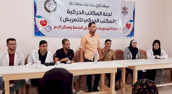 ننفذ المكتب الحركي للتمريض بمشاركة مجلس المرأة في محافظة رفح ، ندوة توعوية حول مرض الضغط و سكر الدم في مكتب حركة فتح بمنطقة حي الجنينة.