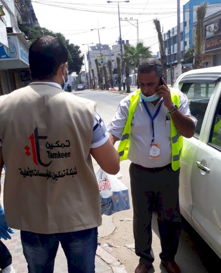 وزعت شبكة تمكين المؤسسات الاهلية ، اليوم الاثنين، طرود مشروبات على العاملين في المخيمات من عمال البلديات وموظفين شركة الكهرباء في ظل جائحة كورونا والتي تجتاح قطاع غزة من اكثر من اسبوع.