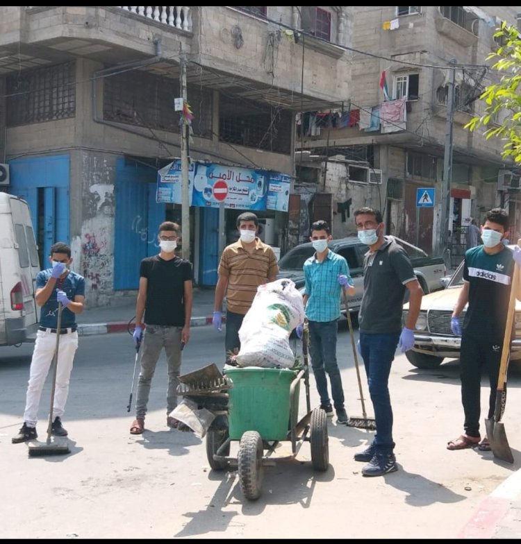 نفذت لجنة اللاجئين التابعة للمؤسسات والمجتمع المدني في حركة فتح ساحة غزة، اليوم الخميس، حملة تنظيف لشوارع المخيم وتعقيمه بدء من شارع اليرموك حتي شارع حمامة بمخيم خانيونس من خلال لجان الاحياء التابعة لها.