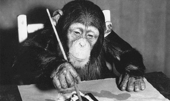 في المرة الأولى التي أعطى فيها موريس قلم رصاص وقطعة من الورق للشمبانزي، لاحظ الموهبة الهائلة التي يتمتع بها الشمبانزي في الرسم. وتمكن من رسم أكثر من 400 لوحة.