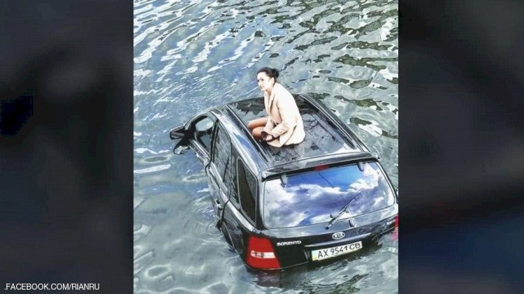 انتشرت على نطاق واسع في شبكات التواصل الاجتماعي، صورة لفتاة أوكرانية تبدو هادئة فوق سقف سيارتها التي كانت تغرق في النهر.