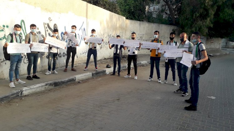 الشبيبة الفتحاوية تنظم وقفة تضامنية مع الاسير ماهر الأخرس امام مدرسة عثمان بن عفان شمال القطاع