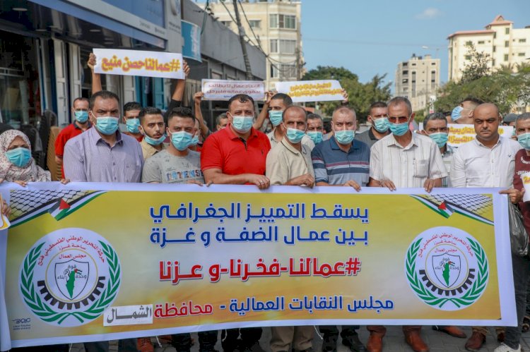 نظم مجلس العمال اليوم الاحد 01/11/2020، وقفة احتجاجية أمام مقر وزارة العمل بمحافظة الشمال وذلك للتنديد بسياسة الفصل الجغرافي بين شطري الوطن ,والتمييز الواضح بين عمال غزة ,وعمال الضفة.