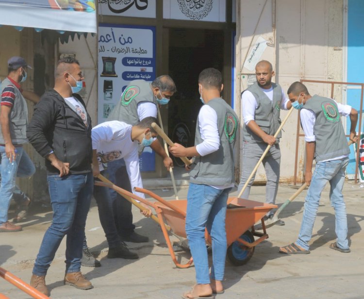 شارك مجلس العمال في محافظة الوسطى في اليوم التطوعي لتنظيف وتعقيم عدد من الشوارع الرئيسية والمحلات والمنازل، في قاطع الشهيد ياسر عرفات .