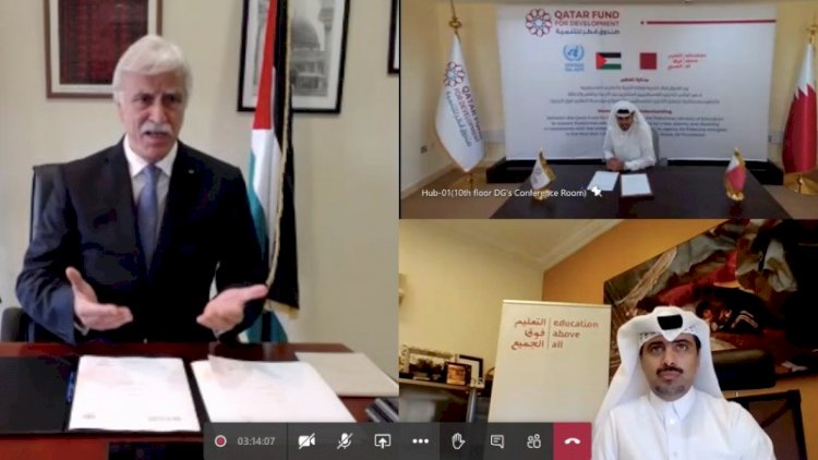 وقع الیوم الأحد 6 دیسمبر 2020 ، مذكرة تفاھم بین وزارة التربیة والتعلیم الفلسطینیة، وصندوق قطر للتنمیة لتنفیذ مشروع لدعم الطلبة اللاجئین عن بعد.