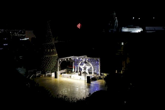 أضُيئت شجرة عيد الميلاد في ساحة كنيسة المهد بمدينة بيت لحم في الضفة الغربية بحضور عدد محدود من رجال الدين والمسؤولين إيذانا ببدء احتفالات العام الجديد.
