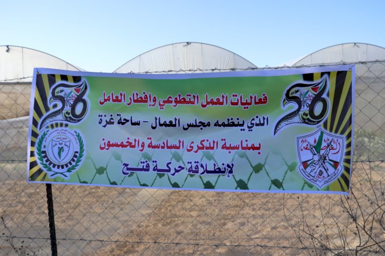 ضمن سلسة فعاليات احياء الذكرى ال٥٦ لانطلاقة الثورة ، نظم مجلس العمال في محافظة خان يونس فعالية تطوعية لتشتيل الأراضي الزراعية و إفطار العاملين فيها في منطقة شرق خان يونس .