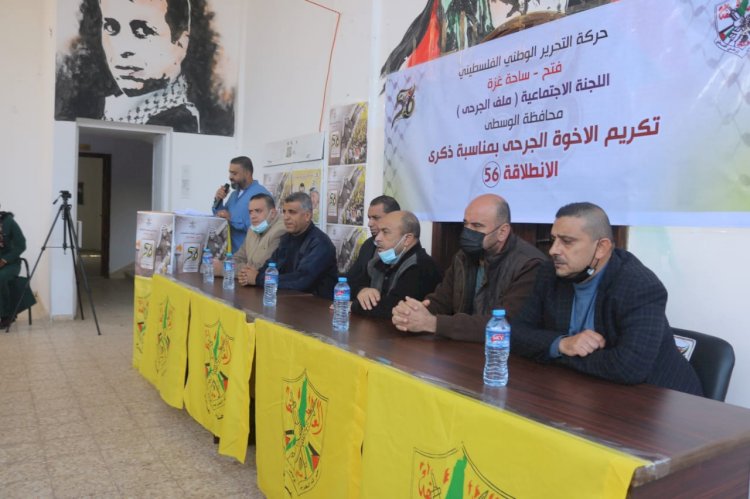 كرَّمت اللجنة الاجتماعية (ملف الجرحى) بحركة فتح ساحة غزة في محافظة الوسطى اليوم الخميس عددًا من جرحى المحافظة، وذلك بمناسبة ذكرى انطلاقة حركة قتح ال ٥٦.