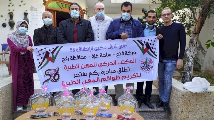 على شرف ذكرى الانطلاقة ال 56.. لجنة المكاتب الحركية بمحافظة رفح تطلق مبادرة تكريم طواقم المهن الطبية