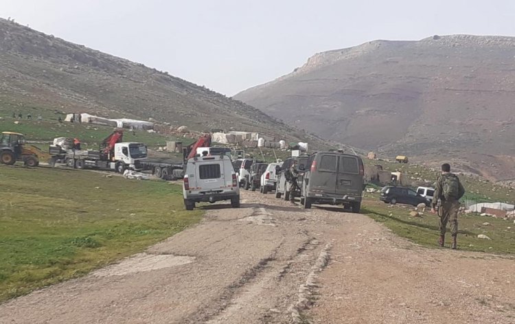 ساعات عصيبة ومضنية عاشها سكان خربة البرج بعد مداهمة قوات كبيرة من جيش الاحتلال، ترافقهم جرافة وشاحنتين، لمضاربهم بالأغوار الشمالية.