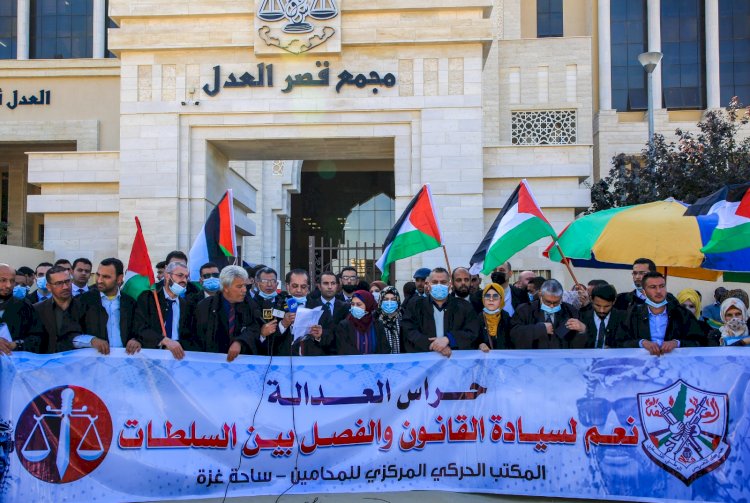 نظم المكتب الحركي المركزي للمحامين بحركة فتح ساحة غزة وقفة احتجاجية قبالة قصر العدل بمدينة غزة وذلك رفضا لقرارات الرئيس محمود عباس والتي مست باستقلالية القضاء تزامنا مع الوقفة الاحتجاجية التي نظمها مجلس نقابة المحامين بمدينة رام الله .