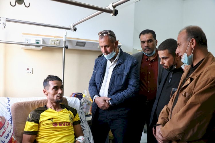 مجلس العمال في ساحة غزة يزور العامل المصاب "محمد أبو سلامة" في مستشفى ناصر الطبي في خانيونس