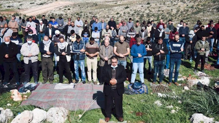 أدى حشد من الفلسطينيون، صلاة الجمعة اليوم، في خربة حمصة الفوقا بالأغوار الشمالية، التي يتهددها خطر الترحيل والتهجير القسري.