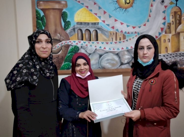 وحضر التكريم سميرة دحلان أمين سر مجلس المرأة ساحة غزة ونائبتها مجد رابعة و مريم مصلح منسق اللجنة.