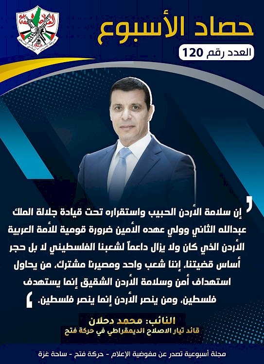 وأكد النائب دحلان على المصير المشترك للشعبين الأردني والفلسطيني، موضحاً أن من يحاول استهداف أمن وسلامة الأردن الشقيق إنما يستهدف فلسطين، ومن ينصر الأردن إنما ينصر فلسطين".