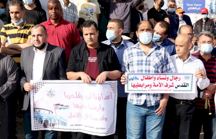 شاركت حركة فتح في محافظة رفح، بوقفة تضامنية مع أهلنا في المدينة المقدسة ، والتي دعت لها القوى الوطنية والإسلامية من أمام دوار النجمة برفح.
