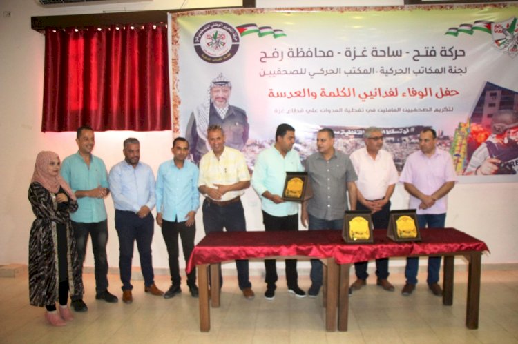 المكتب الحركي للصحفيين في محافظة رفح يُكرم الصحفيين العاملين في تغطية العدوان الإسرائيلي