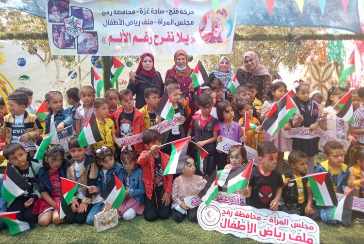نفذت لجنة رياض الأطفال بمجلس المرأة بحركة فتح قاطع الغرب بمحافظة رفح ،اليوم ، مبادرة ترفيهية بعنوان "يلا نفرح رغم الألم "
