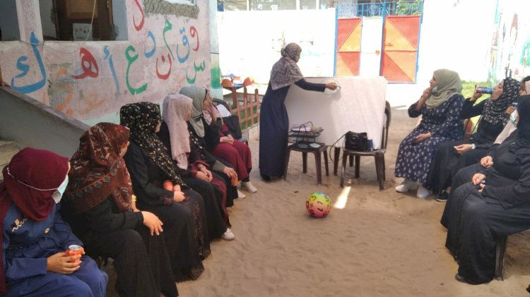 ورحبت الأخصائية حنان منفى بالمشاركات في جلسة دعم نفسي وترفيهي للأخوات ، مقدمة الدعم النفسي والاجتماعي اللازم لهن للتخفيف من التوتر وحدة الضغوطات النفسية التي تتعرض لها النساء كل يوم أثر الأوضاع النفسية والاجتماعية الحروب والمتكررة على قطاع غزة.