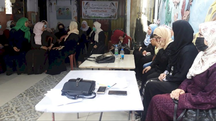 نظمت لجنة المرأة العاملة في مجلس عمال محافظة الوسطى، اليوم الجمعة لقاءً حول تطوير المهارات النقابية للمرأة العاملة ، وذلك بمشاركة أعضاء اللجنة في مخيم المغازي.