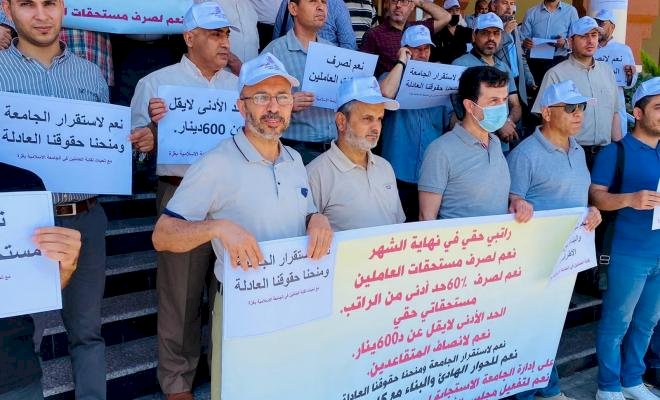 نقابة العاملين بالجامعة الاسلامية تنظم وقفة احتجاجية بشأن الرواتب