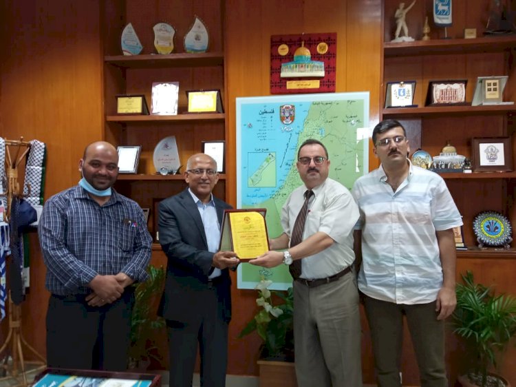 زار وفد من نقابة الصيادلة، يترأسه النقيب الدكتور إيهاب دبابش والدكتور عصام العطار رئيس اللجنة القانونية في النقابة والدكتورأحمد رامي مسعود رئيس بلدية غزة الدكتور يحيي السراج.