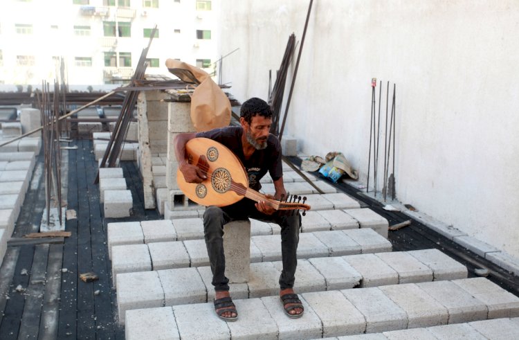 والمواطن أبو غبن يعيش في منطقة المغراقة جنوب مدينة غزة، يستثمر كل دقيقة من وقته في العزف على آلة العود، فهو يعدها رفيقة دربه، حتى إنها تُهون عليه مشقة الحياة، فهو رب أسرة تعيش فقراً مدقعا، نتيجة اغلاق المعابر ومنع ادخال مواد ولوازم الإعمار.