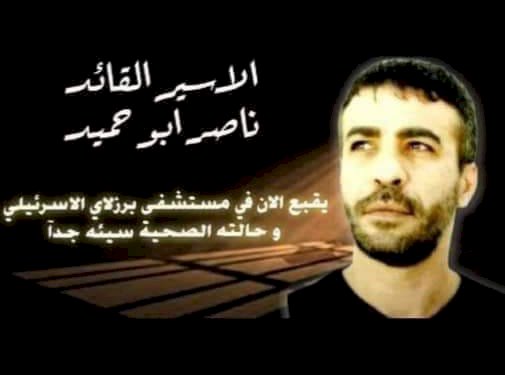 وقالت اللجنة في تصريح لها، أن الأسير ناصر أبو حميد" ٤٩ "عاماً من مخيم الأمعري يقبع الآن في مستشفى "برزلاى" بحاله صحية صعبة جداً، وبعد أن اكتشف الأطباء ورم على رئته وأخذ خزعه منه لتحد حجم ومرحله المرض بعد ان كان يعاني منذ فتره من آلام حاده بالتنفس والصدر.