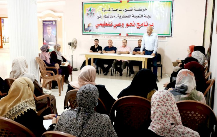 نظمت لجنة التعبئة الفكرية ومجلس المرأة بمحافظة رفح اللقاء الأول ن البرنامج التعبوي بعنوان " نحو وعي تنظيمي" بحضور أحمد حسني أمين سر محافظة رفح ولفيف من هيئة المحافظة وكادر اللجنة التنظيمية ومجلس المرأة.