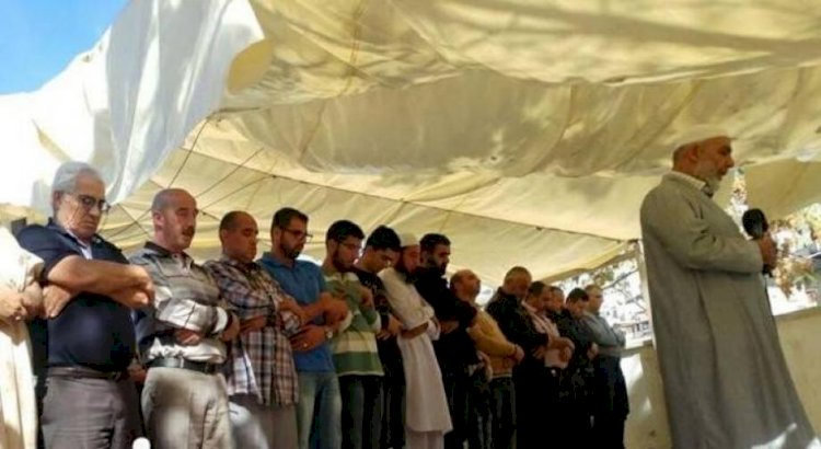 مواطنون يؤدون صلاة الجمعة في خيمة التضامن بمسافر يطا