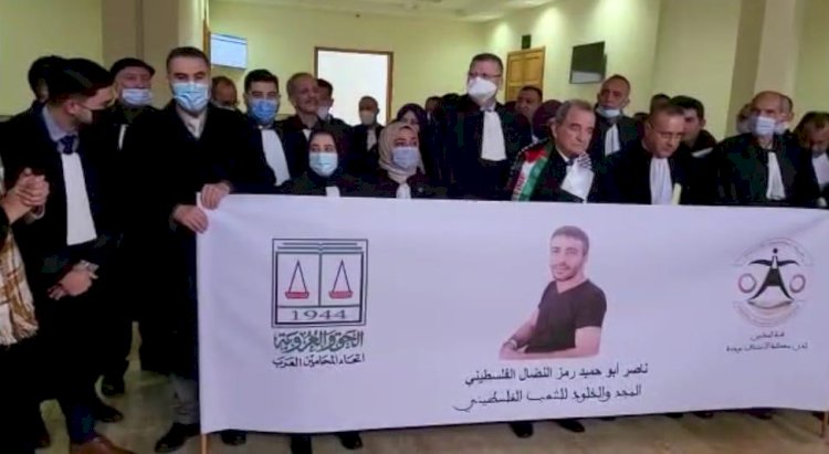اتحاد المحامين العرب ونقابة محامي مدينة وجدة المغربية ينظمان وقفة تضامنية مع الأسير أبو حميد