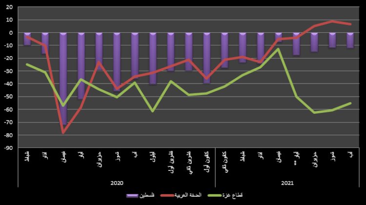 أما في قطاع غزة، فقد ارتفع المؤشر الكلي من -41.0 نقطة في كانون الأول إلى -31.9 نقطة في كانون الثاني.