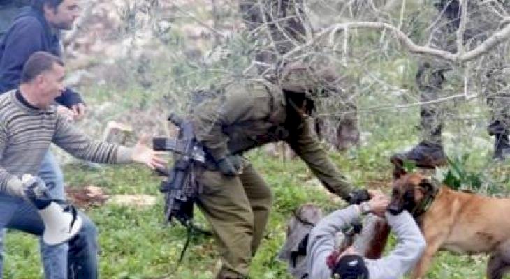 صورة- كلبًا ينهش شابًا فلسطينيًا خلال اعتقاله من قبل جيش الاحتلال