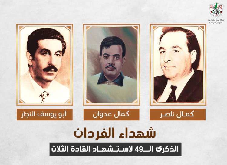 يصادف اليوم الأحد الموافق 10/4/2022 الذكرى السنوية الـ49 على اغتيال القادة الأبطال محمد يوسف النجار "أبو يوسف النجار"، وكمال ناصر وكمال عدوان، لنشاطهم العسكري ضد الاحتلال، وبدعوى مشاركتهم في التخطيط لعملية ميونخ وكان ذلك في ليلة 10/4/1973.