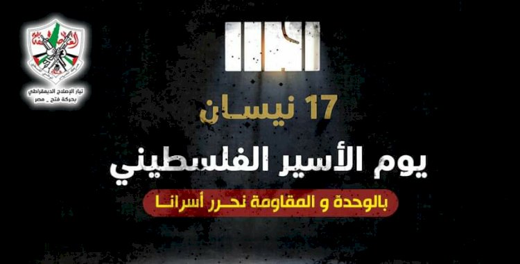 وبعث تيار الاصلاح الديمقراطي في مصر ،بمناسبة ذكرى يوم الأسير الفلسطيني، التحية والتقدير لكل أسرانا وأسيراتنا في سجون الاحتلال.