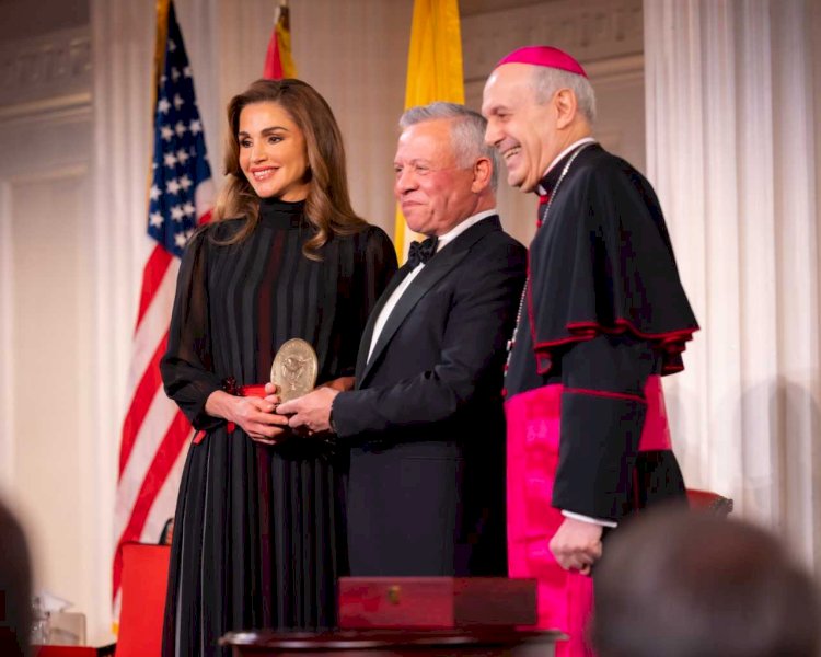 تسلّم العاهل الأردني الملك عبد الله الثاني والملكة رانيا العبد الله، يوم أمس الاثنين، في مدينة نيويورك الأميركية، جائزة "الطريق إلى السلام"، التي تُمنح من قبل مؤسسة الطريق إلى السلام التابعة لبعثة الفاتيكان في الأمم المتحدة.