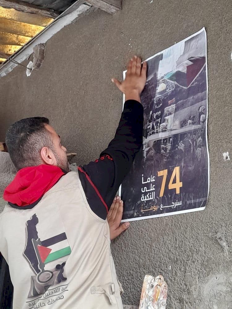 افتتحت لجنة اللاجئين بحركة فتح في محافظة خانيونس، فعاليات ذكرى النكبة 74 بتعليق ملصقات وبوسترات ذكرى النكبة في شوارع مخيم ومحافظة خانيونس.