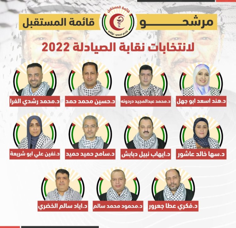 يشار إلى أن قائمة المستقبل للصيادلة النقابية قد أطلقت الخميس الماضي، برنامجها الانتخابي لخوض انتخابات نقابة الصيادلة الفلسطينيين لدورة 2022 - 2025.
