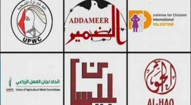 والمؤسسات هي: مؤسسة الضمير لرعاية الأسير وحقوق الإنسان، والحركة العالمية للدفاع عن الأطفال – فلسطين، ومؤسسة الحق، واتحاد لجان العمل الزراعي، واتحاد لجان المرأة الفلسطينية، ومركز بيسان للبحوث والإنماء.