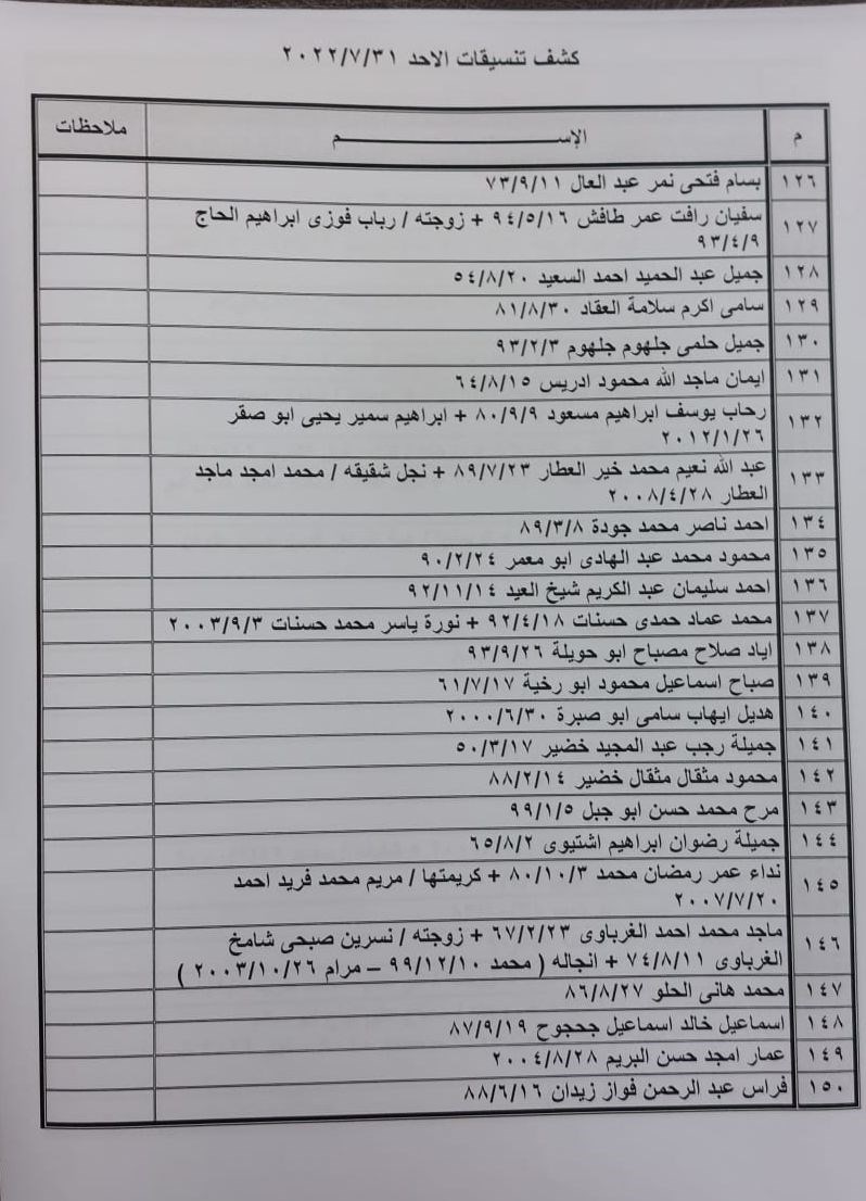 أعلنت الهيئة العامة للمعابر والحدود بوزارة الداخلية والأمن الوطني بغزة، عن وصول كشف "تنسيقات مصرية" للسفر عبر معبر رفح البري يوم الأحد (31 يوليو).