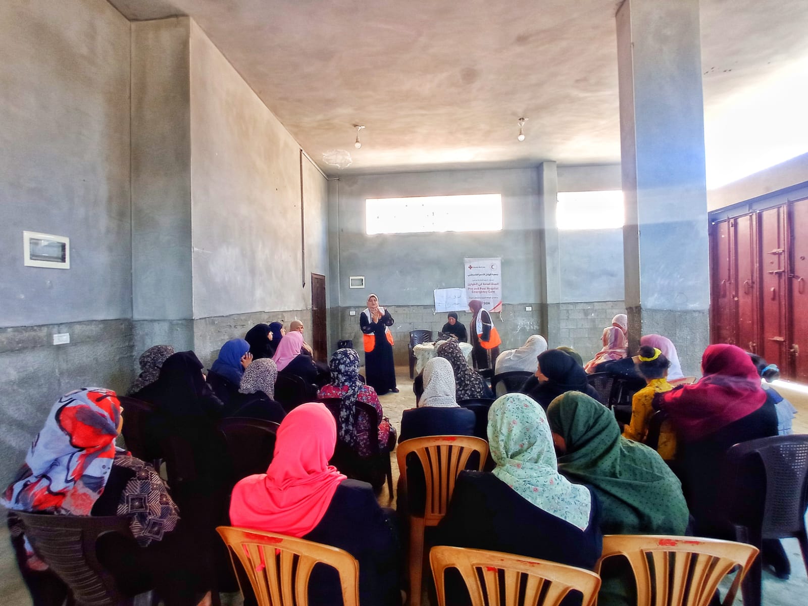 نفذ مجلس المرأة بمحافظة غزة قاطع الصبرة والزيتون بالمشاركة مع جمعية الهلال الأحمر الفلسطيني ورشة بعنوان "مخلفات الحرب" الغير متفجرة لرفع التوعية حول الإجراءات الصحيحة لتحديد تلك المخلفات، والاستجابة الآمنة للتلوث بمخلفات الحرب الغير منفجرة