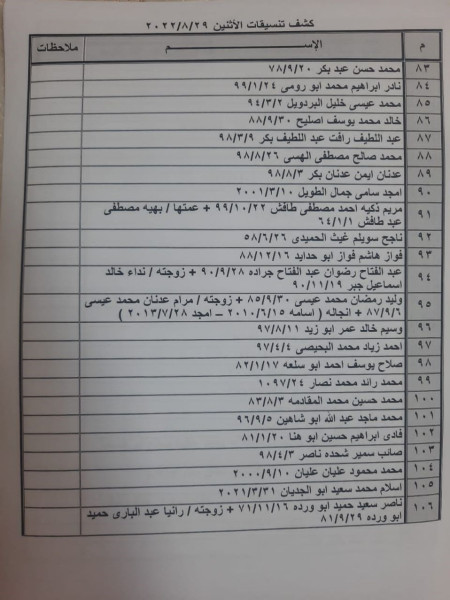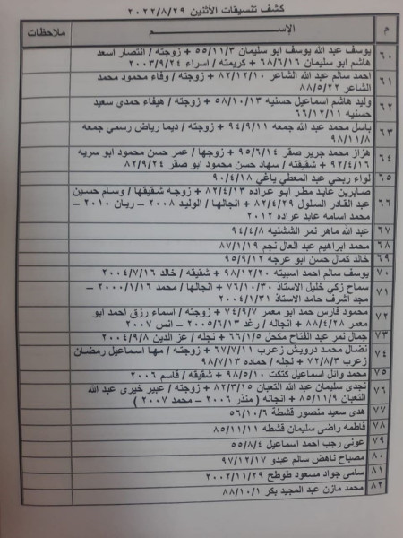 وقالت الهيئة: إنه "على الأسماء المذكورة التواجد في تمام الساعة الثامنة صباحا في الصالة الخارجية للمعبر لتسهيل سفرهم".