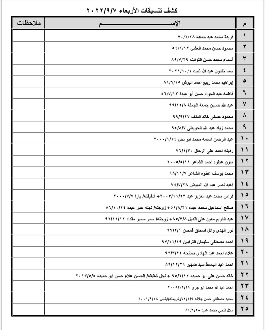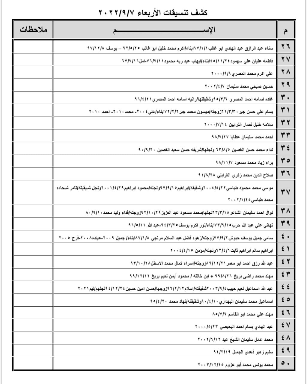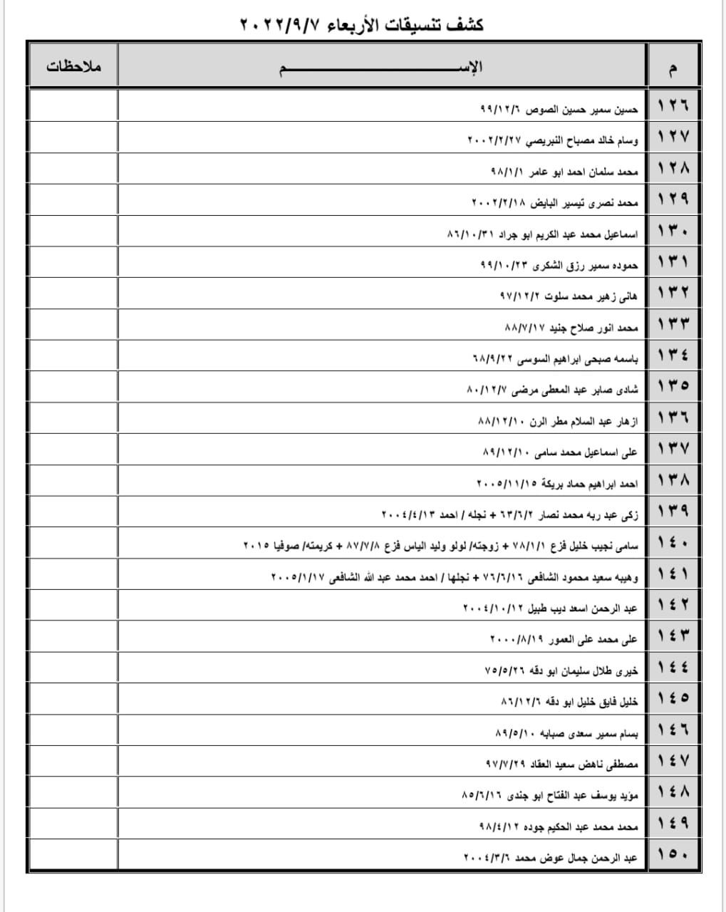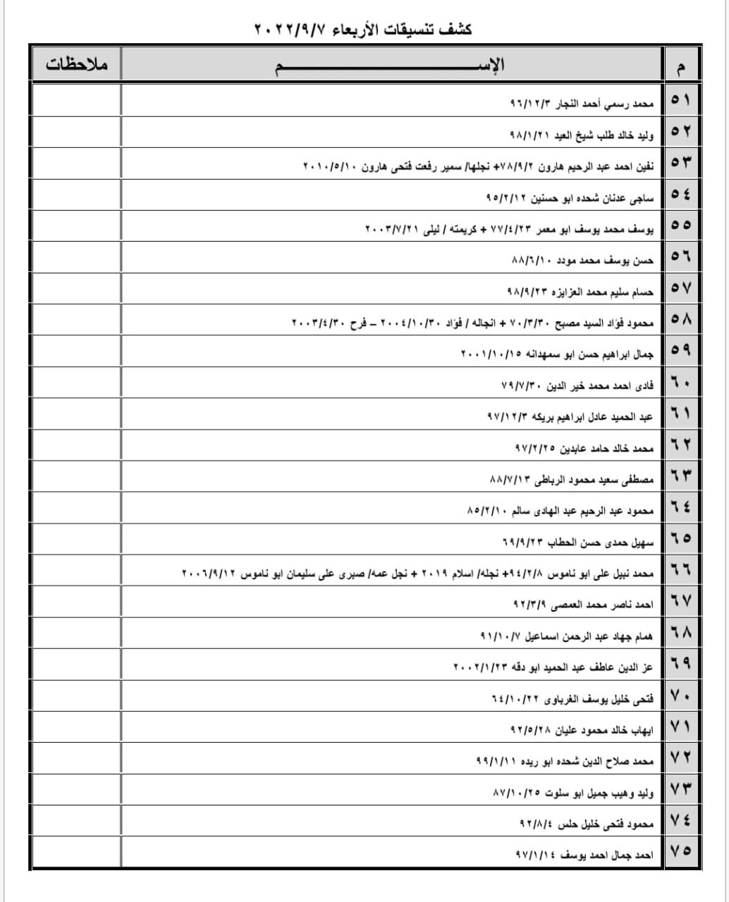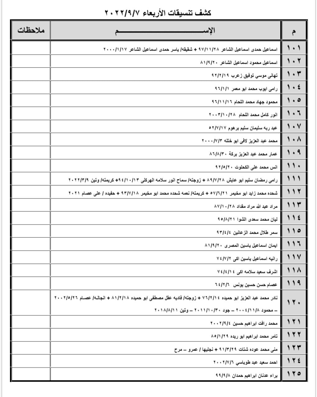 تعلن الهيئة العامة للمعابر والحدود بوزارة الداخلية والأمن الوطني عن وصول كشف "تنسيقات مصرية" للسفر عبر معبر رفح البري يوم الأربعاء (7 سبتمبر)، والذين عليهم التواجد س 8:00 صباحاً في الصالة الخارجية للمعبر لتسهيل سفرهم.