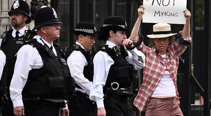 إلقاء القبض على سيدة تحمل لافتة "لا.. للملكية" أمام الملك تشارلز