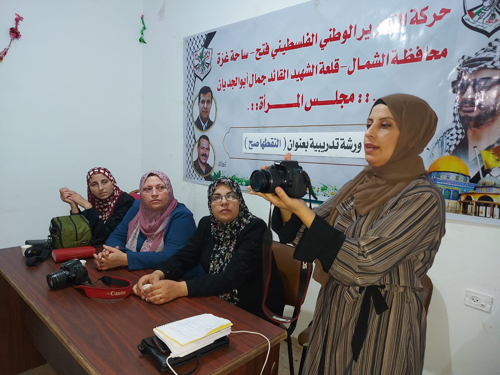 من جانبها تحدثت سائدة الزعنون منسق لجنة التواصل المجتمعي، حول أهم المواضيع الأساسية التي ينبغي أن يلمّ بها المصور الفوتوغرافي، وهي كيفية مسك الكاميرا وفتحها واغلاقها، وعدة مواضيع أخرى مثل التحكم في الإضاءة وضبط الألوان، والمعدات المطلوبة للتصوير وميزات مختلف العدسات، وضبط الفوكس أثناء تصوير الأشخاص وغيرها ، مبينة إلى بعض المشاكل الشائعة التي يواجهها المصوّر مثل: الإضاءة في الأماكن الضيقة، وعدم اختيار الزاوية الصحيحة لأخذ الصورة، وعدم اكتمال كافة مكونات الصورة الجيدة.