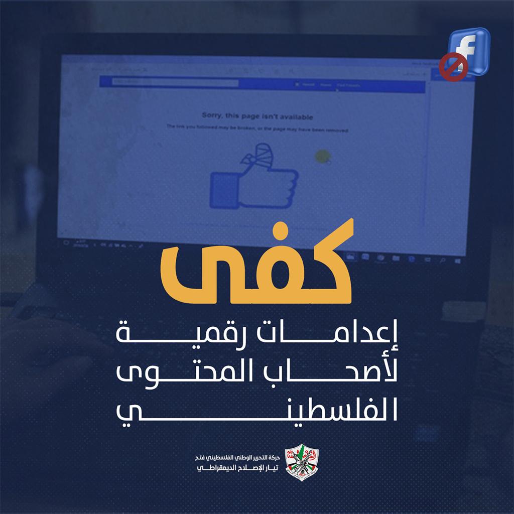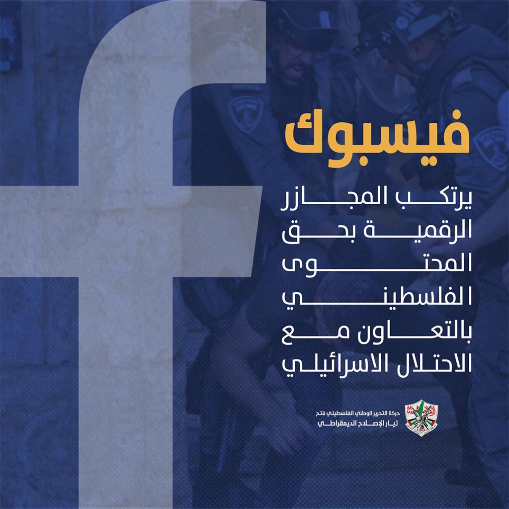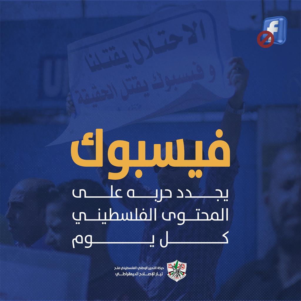 أطلق تيار الإصلاح الديمقراطي في حركة فتح، اليوم الأحد، حملة إلكترونية ضد سياسات موقع التواصل الاجتماعي فيس بوك، والجرائم التي ترتكبها هذه المنصة بحق المحتوى الفلسطيني، والصحفيين والنشطاء الفلسطينيين.