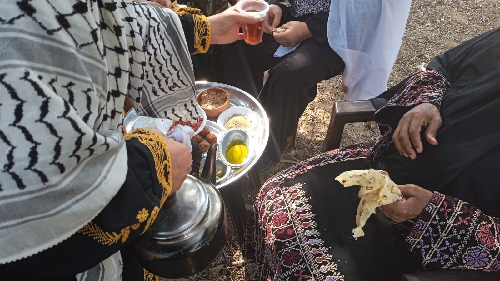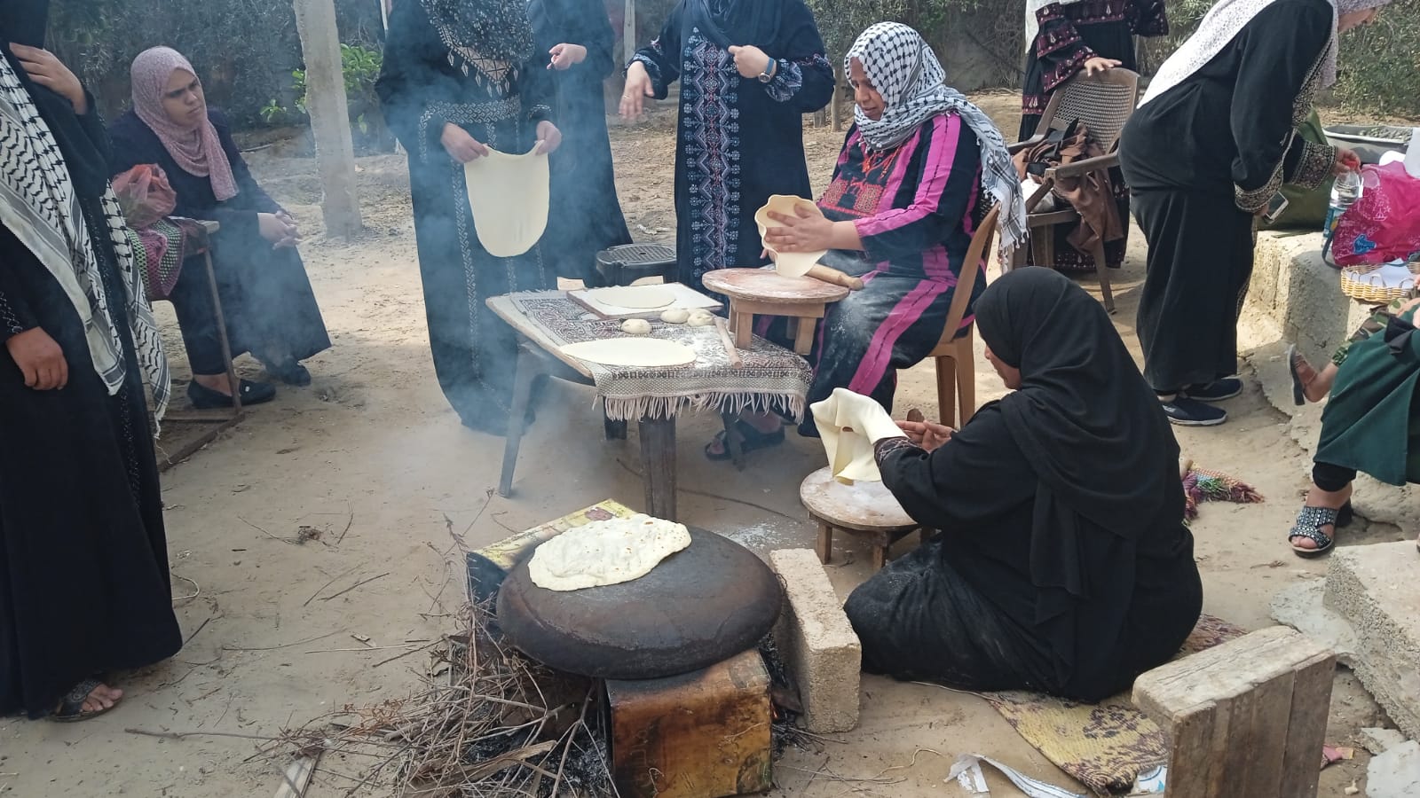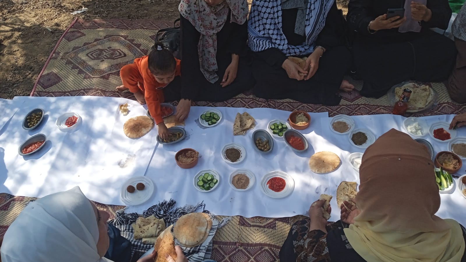 وتخللت مراسم يوم القِطاف في المنطقة، تجمع لكافة الأخوات الفاعلات أمام الفطور الفلسطيني التقليدي المكون من الزيت والزعتر والأجبان والخضروات، وشرب الشاي والقهوة المصنوعة على نار الحطب، ومن ثم جمع "الزيتون الجرجير"، وخبز الصاج الذي تلوحه أنامل السيدات للحفاظ على الموروث الفلسطيني.